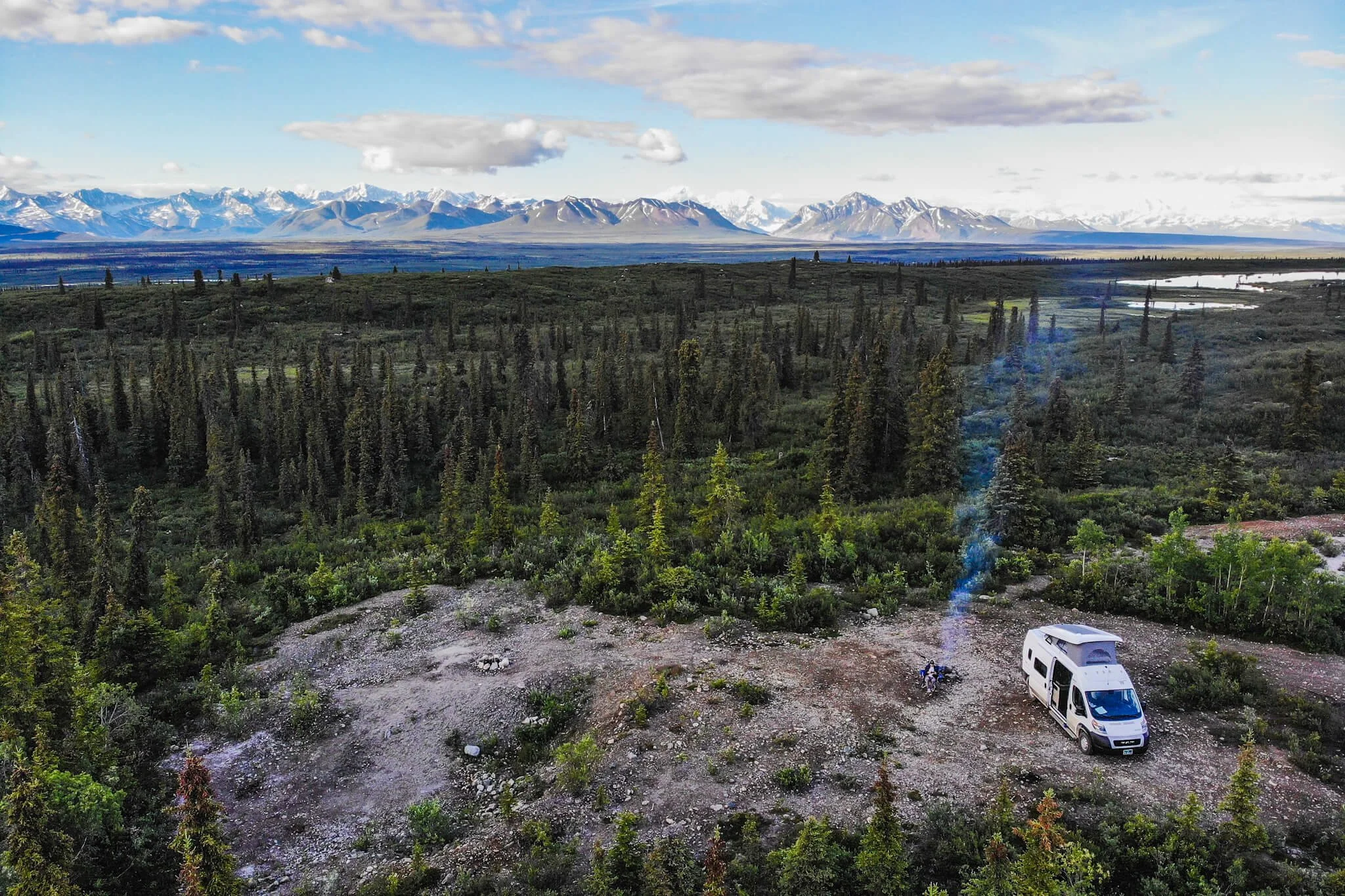 Wild camping on the Denali Highway - Smokey fire built to fend of mosquitoes