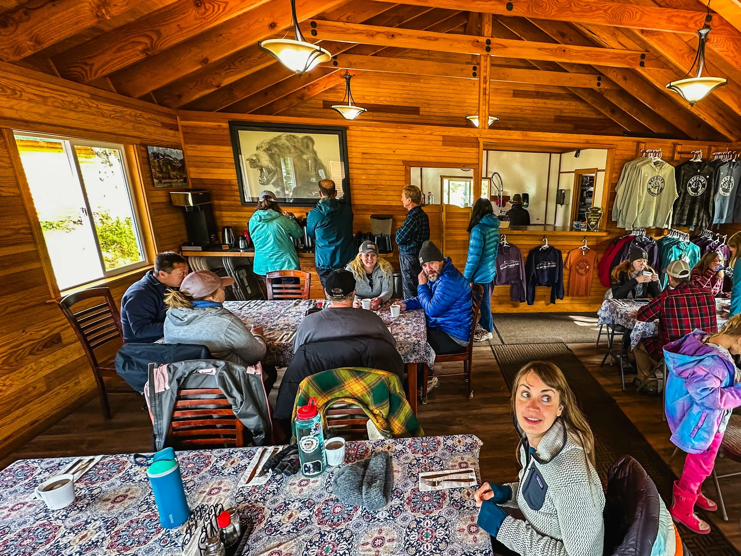 At around 1 p.m., we were taken back to the lodge and invited for lunch. As we waited, we were offered steaming hot chocolate, freshly brewed coffee, and a variety of teas. The lodge restaurant was not only clean and cozy but also offered exceptional service, especially given its remote location. For lunch, we were treated to delicious fresh sockeye salmon served with a flavorful salad and rice. To top it off, we were surprised with a delightful treat of fresh cookies. After lunch, around 2 p.m., we eagerly returned to the boats to continue the search for bears.