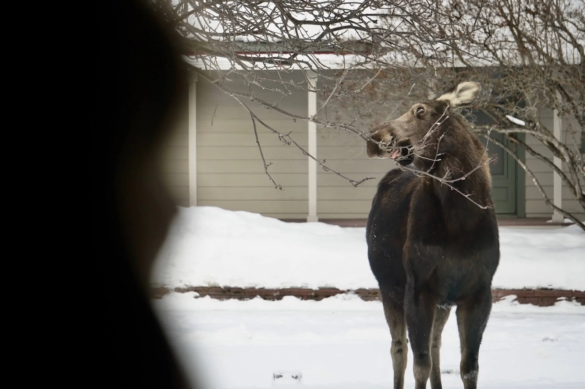 A moose visiting our front yard in Anchorage, Alaska